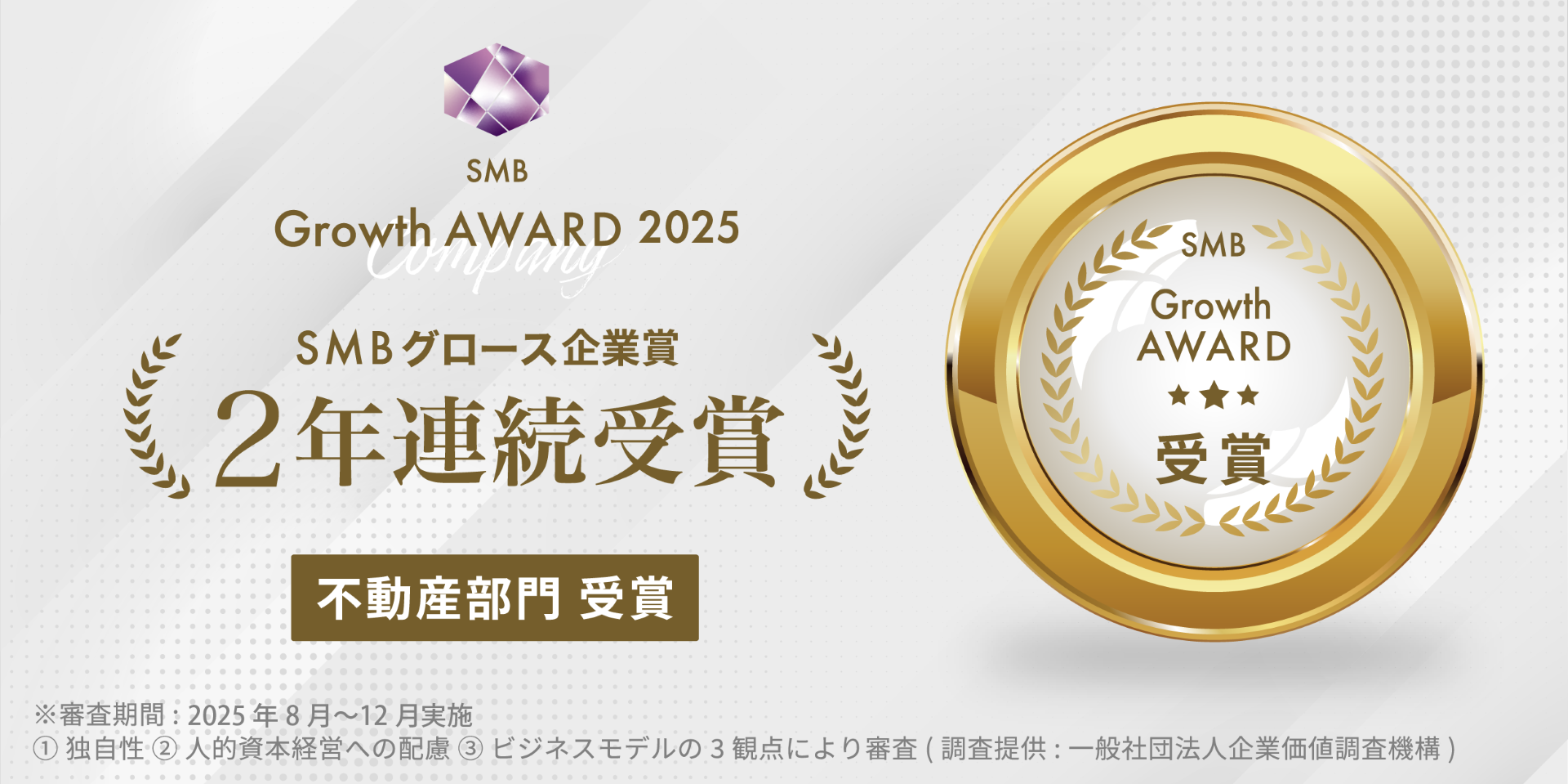 にて全国300万社の中から選出され「2025年度SMB Growth 企業賞 不動産部門」を受賞しました。