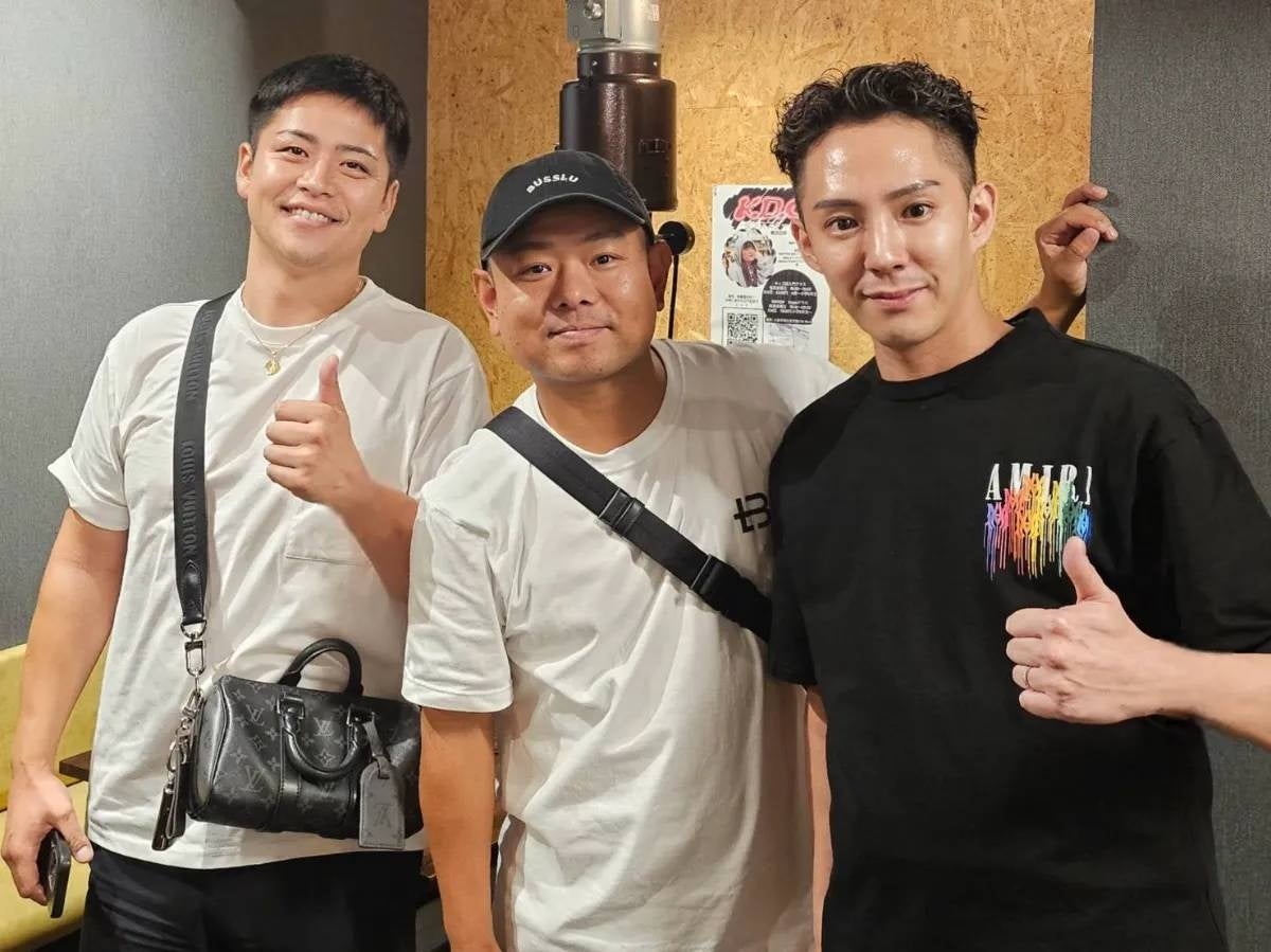 企業賞内参照:創業から共に同じ志を持ちお力添え頂いているY.K.Glad.Home株式会社合田竜二代表取締役(左) 。大阪泉州が産んだジャパレゲシーンを牽引しつづけているレゲエシンガーNATURAL WEAPON(真ん中)。合同会社レクソル田中代表(右)。同世代で業種が違えど切磋琢磨している仲である。