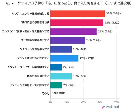 調査結果:マーケティング予算が「倍」になったら、真っ先に何をする?(二つまで選択可)