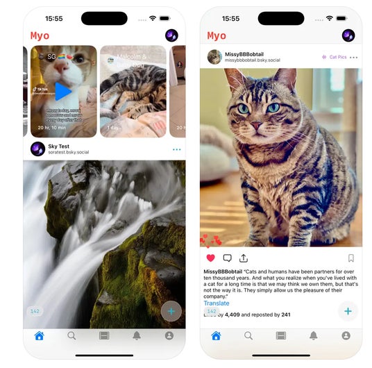 Mastodon・Misskey・Bluesky を横断できるクライアント。端末内 ML による “For You” タイムラインが、米国の著名テックメディア TechCrunch で 2 度特集 [1] [2] され、VisionOS ストアでも「日本開発者のアプリ」として紹介。