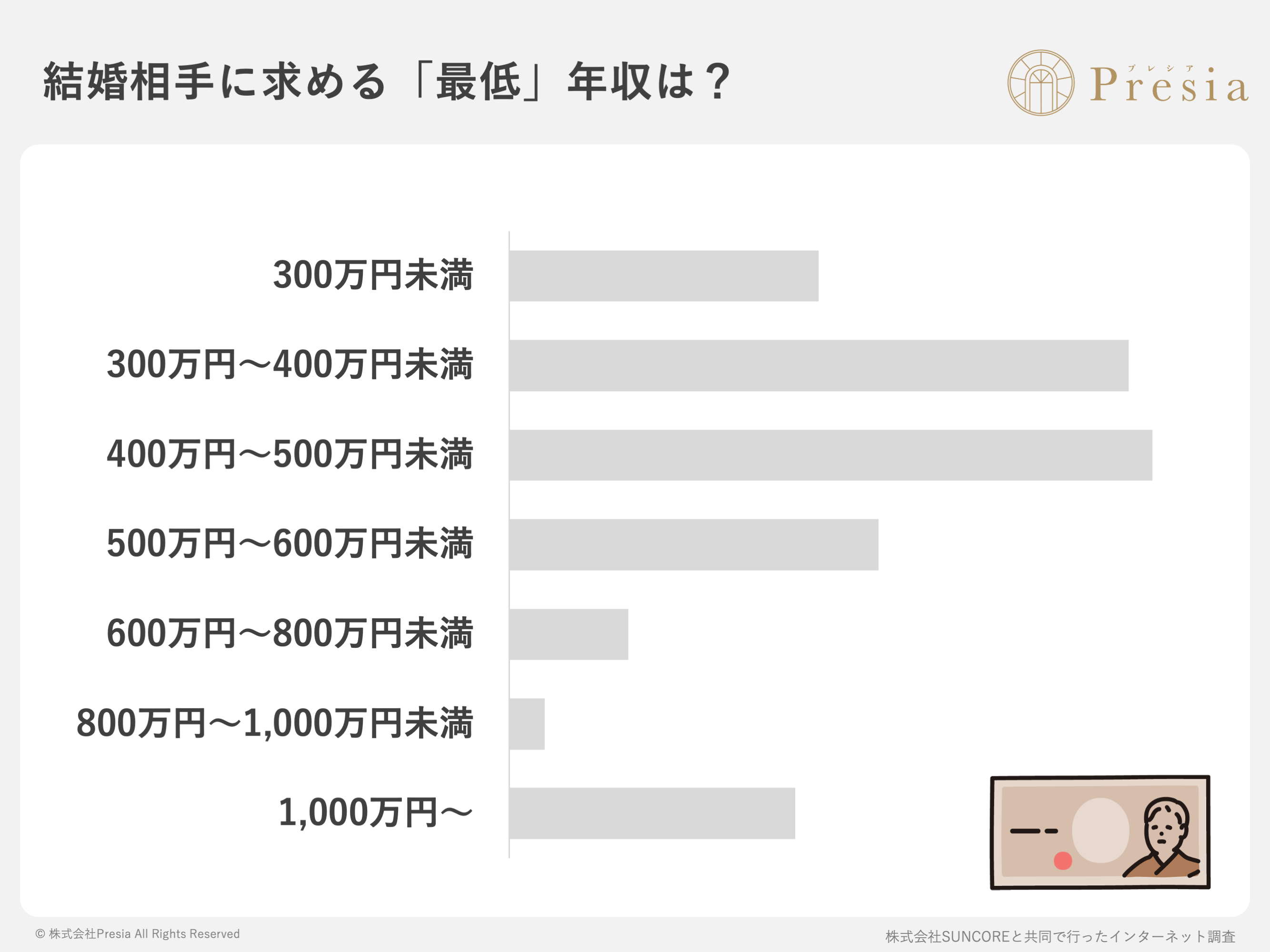 20代~40代の未婚女性200名を対象に、「結婚相手に求める年収」のアンケートを実施