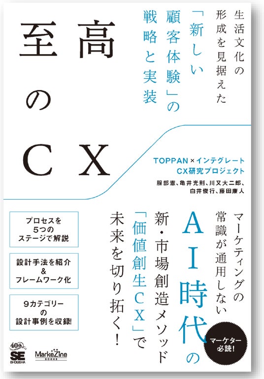 株式会社インテグレート(本社:東京都渋谷区、代表取締役CEO:藤田康人、以下、インテグレート)は、TOPPAN株式会社との共同プロジェクト「TOPPAN × インテグレート CX研究プロジェクト」において集積した知見をまとめた書籍『至高のCX 生活文化の形成を見据えた「新しい顧客体験」の戦略と実装』を、5月25日(月)に株式会社翔泳社より刊行いたします。