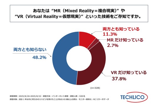 過去1年以内にリハビリを受けた高齢者の5割弱が、“MR”や“VR”といった技術を知らない