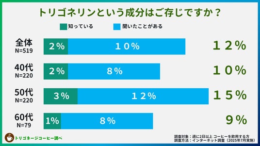 しかし、「トリゴネリンという成分を知っていますか?」との問いには、「知っている」と答えた方はわずか2%。「聞いたことがある」を含めても、12%の人しか知らない成分でした。
