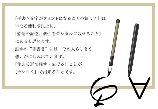 デジタルコミュニケーションが主流となった現代において、誰かの“手書き”には、その人らしさや想いがにじみ出ています 。当社は、「手書き文字がフォントになることの嬉しさ」の本質は、単なる便利さ以上に「感情や記憶、個性をデジタルに残せること」にあると考えました。