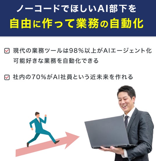 AIエージェントの受託、AIエージェント構築スクール、法人向け研修を行う株式会社ALLI(本社:東京都港区元赤坂1−3−10、代表取締役:中條裕章)は、ノーコードAIエージェント構築の法人研修「マナビトエージェントfor biz( https://ai-jump.jp/pr )」をリリースします。