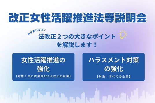 中小企業等の経営者・人事労務担当者を対象に、改正法のポイントをわかりやすく解説する説明会となっています。参加は無料です。