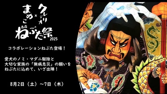 エランコジャパン株式会社(本社:東京都港区、代表取締役社長:フィリップ フッゲンベルガー、以下エランコ)は、大人気ブロガー・漫画家の「まめきちまめこ」とコラボし、2025年夏の「青森ねぶた祭」(運営:青森ねぶた祭実行委員会、所在地:青森県青森市)にオリジナルの前ねぶたを出陣させます。本コラボでは、まめきちまめこの漫画の人気キャラクターがクレデリオ錠(以下クレデリオ)と共に登場し、ペットの健康を守るために動物病院でのノミ・マダニ対策を推奨するメッセージを込めています。