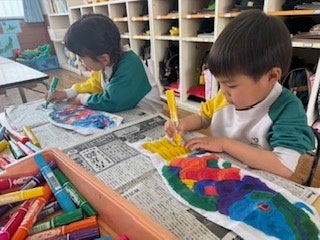 地元の幼稚園と連携し、園児たちがオリジナルこいのぼりに絵を描くワークショップを実施。それぞれの個性が溢れるこいのぼりたちが並ぶ風景は、まさに地域の未来を象徴するものとなりました。