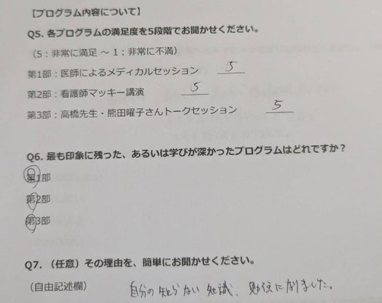 第1部(医師セッション): 専門的な知見(脳神経外科的視点、テストステロン等)が得られた点が評価されました。