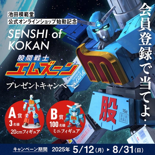 オープンを記念して、夏場の股間のかゆみから世界を救う正義のヒーロー「股間戦士エムズーン」のフィギュアが当たるプレゼントキャンペーンを開催いたします。