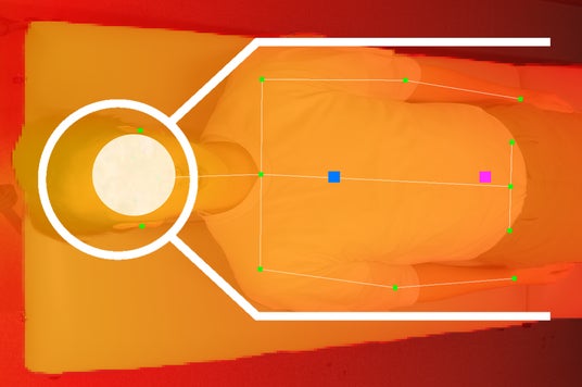 このとき、BREVIは計測点(胸部と腹部)を瞬時に自動で特定します。撮影者はiPad Proのカメラを利用者にかざすだけで呼吸状態を計測できます。