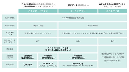お申込み・ご契約はこちら(株式会社VitalizarのHP)からWebで完結する形で実施頂けます。プランはライトにお使い頂けるスタンダードプランと、リッチなデータが取得可能なゴールドプランをご用意しております。また、出来るだけ多くの事業者の方にご使用頂きたく、ご利用料金に関しては可能な限り低く設定しています。