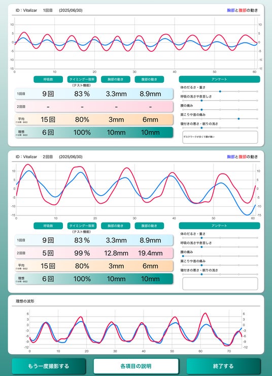 国立大学法人東京科学大学の認定ベンチャーである株式会社Vitalizar(本社:東京都千代田区、代表取締役:大石 裕)は、たった1分間のカメラ撮影で呼吸状態をミリ単位で計測するアプリ「BREVI」をリリースしました。主に全国の治療院やトレーナー向けのアプリで、これまでに約70社のお客様から事前申込みを頂いております。