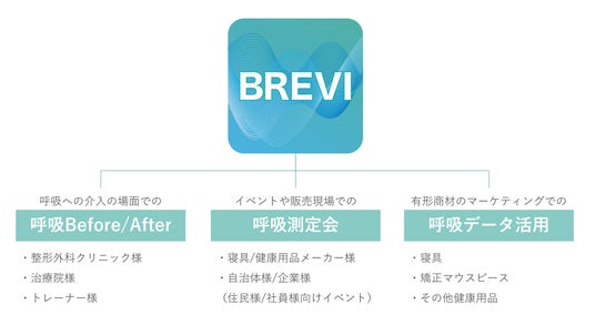 そこで当社は、利用者の呼吸数や呼吸中の胸腹部の振幅などを客観的、かつ簡単に計測できるアプリ「BREVI」を開発、リリースしました。BREVIは呼吸の状態やその変化を客観的に示すだけでなく、治療院様/トレーナー様と利用者様の目線をあわせ、活発なコミュニケーションを実現します。また、健康用品や寝具を扱う企業様の商品の販売現場での活用が考えられるほか、呼吸データを活用し、企業様や研究機関様の研究や効果検証を支援していきます。