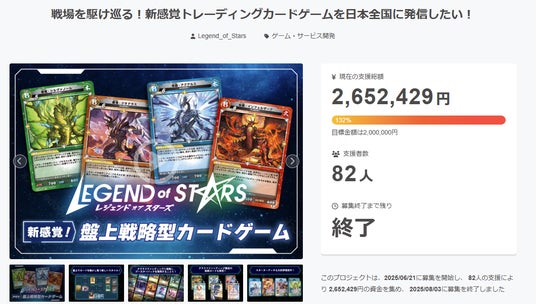 クラウドファンディングサイト「CAMPFIRE」にて2025年6月21日(土)より実施していた第1弾ブースターパック製造プロジェクトが、8月3日(日)に終了し、260万円(達成率132%)を達成しました。