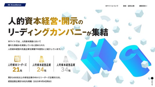一般社団法人 人的資本と企業価値向上研究会(所在地:東京都、代表理事:松岡 仁)は、日本最大規模の「人的資本調査」において先進的な取組みを進めている企業を一堂に集めて紹介するウェブサイト「HC Excellence」( https://www.hc-excellence.jp/ )を公開しました。