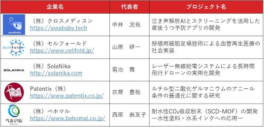 本事業は1983年の設立以来、技術志向型中小企業の育成を目的として行っているもので、今回は64件の応募の中から、厳正なる審査の結果、5件のプロジェクトが選出されました。