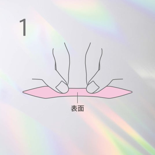 台紙から剥がし、表面を 自分の方に向けて上から持つ