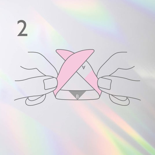 表面の三角形Bの底辺が裏面(粘着面)Bの下の線と重なるように貼り合わせる