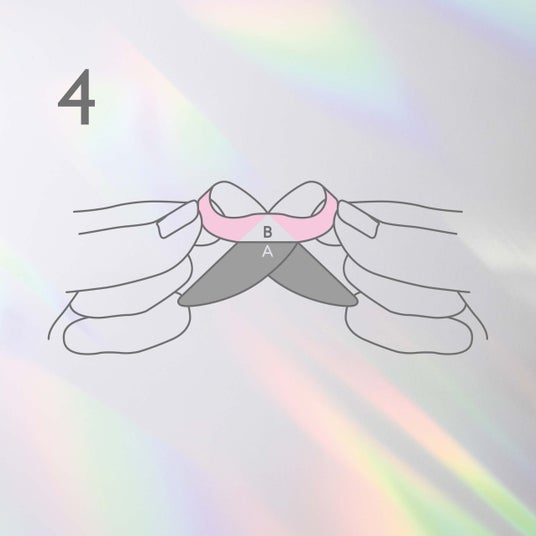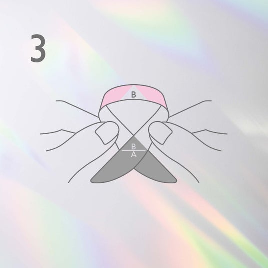 図のように左右を交差させ、膨らみの太い所でAを隠すように貼り合わせる