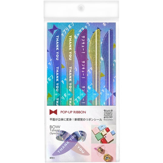 BOW2ヶ所貼り合わせるだけで、可愛いリボンの形に仕上がります。ホログラム素材を使用し、キラキラと輝く存在感のあるリボンに仕上げました。