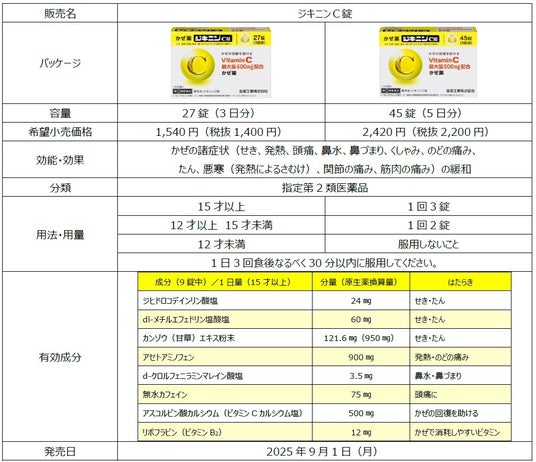 ~ 「ジキニンC錠」 2025年9月1日(月)発売 ~