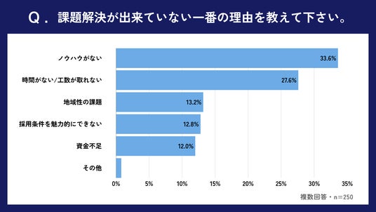 課題解決を妨げる理由:ノウハウ不足(33.6%)、時間不足(27.6%)