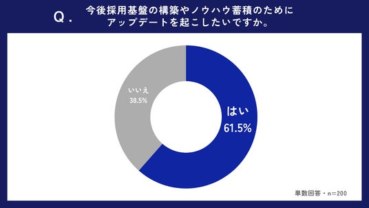 「Q5.今後採用基盤の構築やノウハウ蓄積のためにアップデートを起こしたいですか」という質問に対しては、「はい」と回答した医師は61.5%。多くの現場が変革の必要性を認識しています。