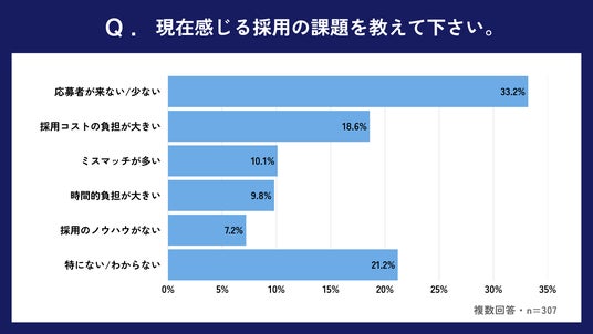最も多い採用課題 :応募者が来ない(33.2%)