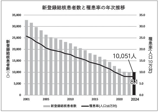 2024年・日本の結核の統計・新登録結核患者数 10,051人