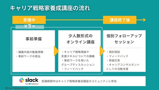 「“キャリア戦略家”養成講座」は、キャリパト式の理論と実践を通して、自分自身はもちろん、他者のキャリアにも伴走できる支援者になるための講座です。