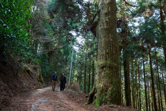 標高681mの若杉山(わかすぎやま)一帯は、古くから山岳信仰の霊場として受け継がれてきた歴史ある地で弘法大師空海ゆかりの地でもあります。杉木立を抜ける風の音と鳥の声だけが響く空間は、都会の喧騒を忘れさせる圧倒的な没入感を与えてくれます。
