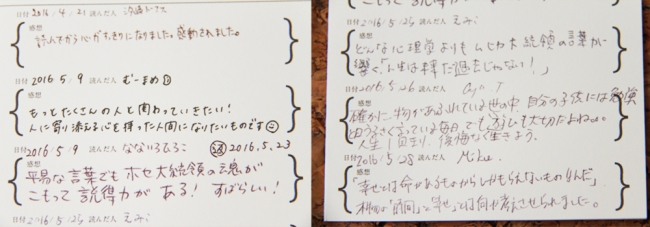 ↑本には寄贈者が「感想」をしたためることができる