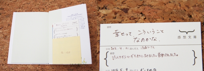 中でも好評だった住む人・働く人の読み終わった寄贈本で構成される本棚「感想文庫」は寄贈者が寄付する本に感想をしたためることができる。その本を読んだ別の人が本への感想を返せる「コミュニケーションできる図書館」が利用者に好評。「知らない人から手紙が返ってきたような気分になる」や「自分が褒められたかのような気持ちになる」など新しい図書館の仕組みが出来上がっている。