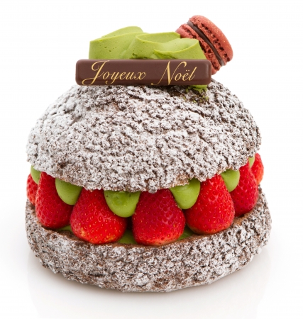 フランス産発酵バターを使って焼き上げたショコラの味わいが生きた香ばしいシュー生地に、いちごと抹茶のクレームを挟みました。いちごの優しい酸味と、渋みのきいた濃厚な抹茶が見事にマッチしたクリスマス限定のおいしさです。