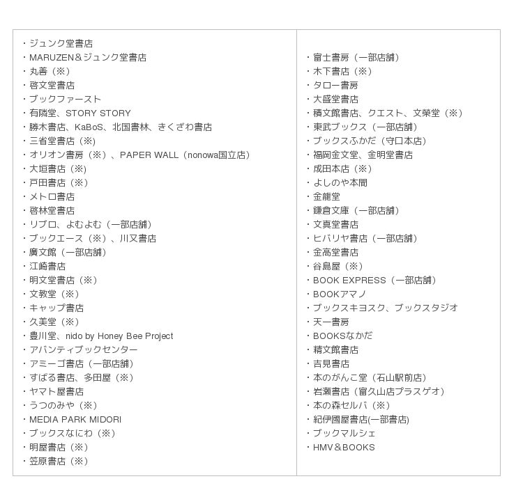 キャンペーン対象書店(※は一部店舗を除く、順不同)