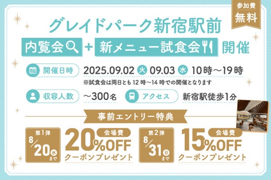 ◆法人様限定 内覧会&新メニュー試食会を開催!事前エントリーで会場費割引クーポンも進呈
