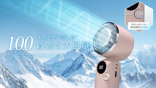 驚異の前年比風量約35%アップ。スナック菓子とほぼ同じ軽さを実現。100段階で選べる風量機能で、もっと猛暑に手放せない私のパートナーに。