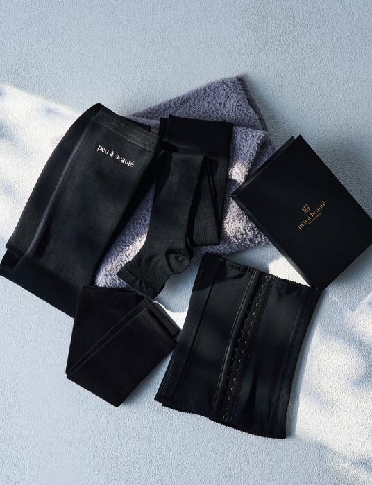 peu a beaute(プウアボーテ)は、エステティックサロンなどでのカウンセリング販売を想定し、国内の職人による丁寧なモノ作りを実現しながらも、光電子(R)繊維を贅沢に使用した高品質・高機能な日本の『機能性美容インナーアパレル』ブランドです。体温を利用して遠赤外線を輻射することで、血行促進やむくみ軽減、冷え対策をサポートし、スパッツやガードルなどでシェイプアップ、骨盤ケア、姿勢サポートなどを「着るだけ」で実現し、美容・エステサロンでも人気です。 締め付けず着続けられる機能性インナーとして開発されたシリーズです。