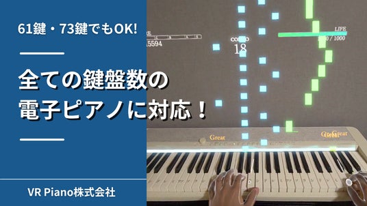 VRピアノゲームを開発・運営するVR Piano株式会社は、これまで88鍵盤の電子ピアノのみ対応していた本アプリが、61鍵盤・73鍵盤・76鍵盤など、すべての鍵盤数の電子ピアノに対応できるようになりましたことをお知らせします。