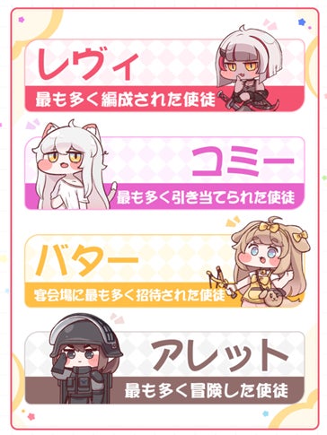 それから、登場が多かった「人気者」たちを発表しようかしら! ランクインしたのは、レヴィ、コミー、バター、アレットね! って、ちょっと、私が入ってないってどういうこと!?(地団駄を踏む)