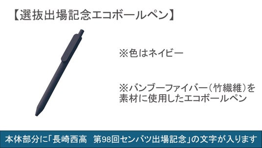 主なリターン: 選抜出場記念エコボールペン、長崎西高オリジナルキャップ、長崎西高オリジナルTシャツ、長崎西高オリジナルノート