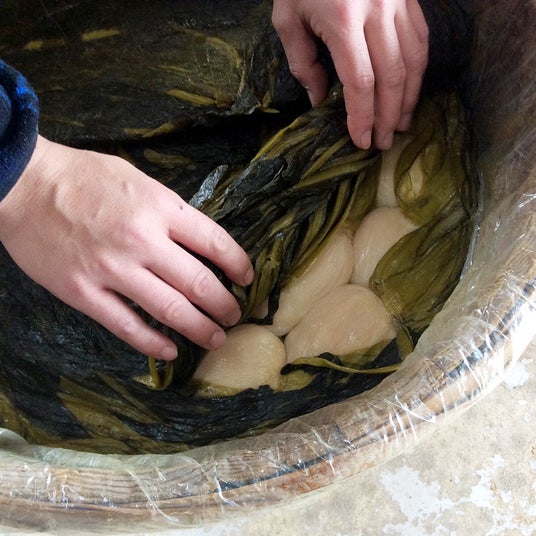 すぐき漬けに使われる「すぐき菜」は、京都最古の神社である上賀茂神社の社家によって約400年前から栽培され、かつては一本たりとも持ち出すことが禁じられ、種一粒さえ門外不出であったそうです。それ故にすぐき漬けは、江戸時代初期から上層階級の人への高級贈答品として重宝され、今では京都の三大漬物として名を連ねています。