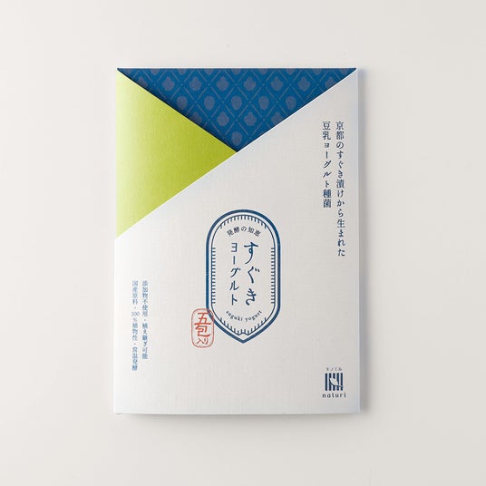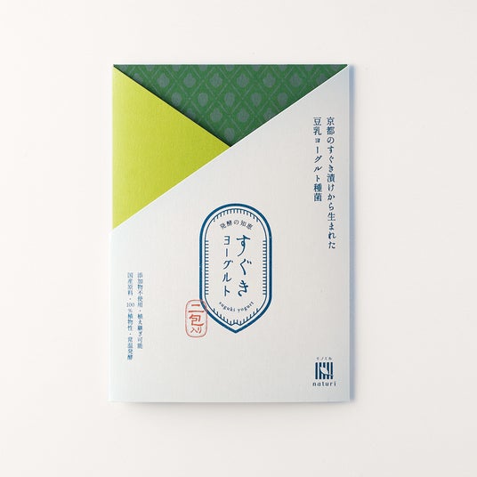 100%植物由来・国産原料・常温発酵・植え継ぎ可能の豆乳ヨーグルト種菌「発酵の知恵すぐきヨーグルト」のパッケージリニューアルを記念して、メディア様に2包入を無償でご提供!ぜひこの機会にお試しください。