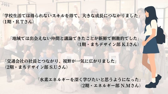 - 過去最多のラインナップ 生成AI部、せかい留学部・スポーツ科学部・エネルギー部・まちデザイン部・スピーチ部の6部活に加え、誰でも気軽に参加できる 「1DAY限定プログラム」 を新設。