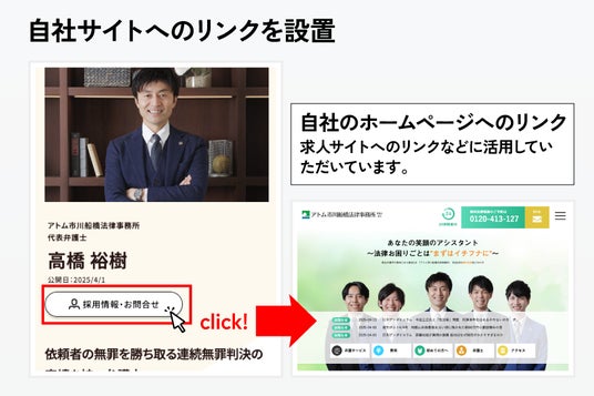 「士業プロ名鑑」の掲載ページには、事務所のホームページへのリンクも設置します。