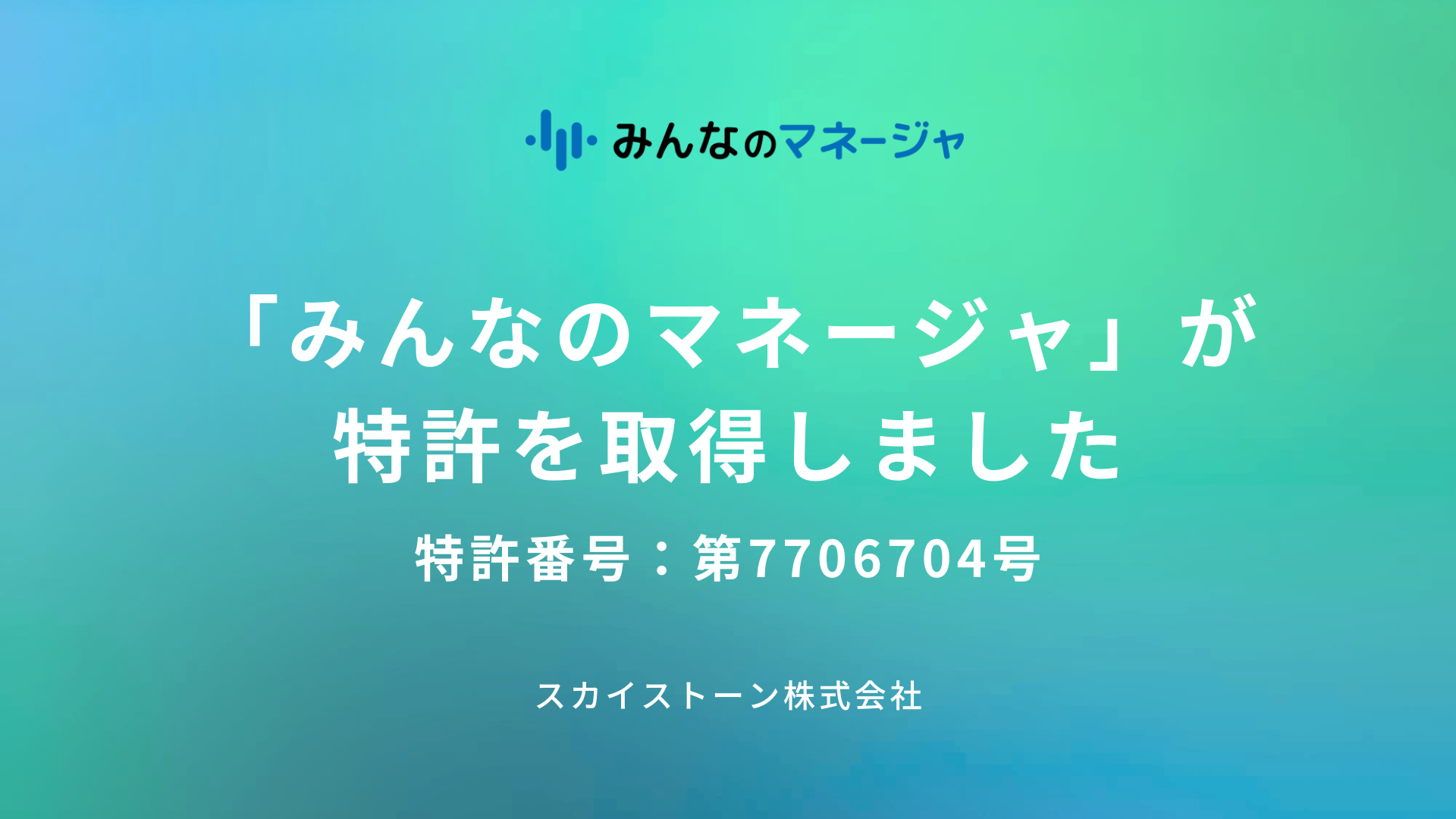 スカイストーン株式会社(本社:大阪市北区、代表取締役:大原泰裕)が提供する人材マネジメント支援クラウド「みんなのマネージャ」が特許取得したことをお知らせします。