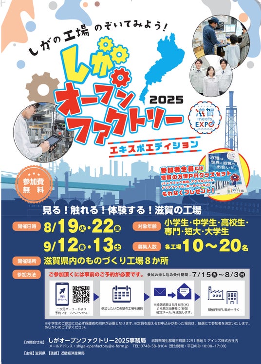 2025年の大阪・関西万博開催を契機に、ものづくりへの関心が高まる中、滋賀県では県内中小製造業が行うオープンファクトリー(普段は見ることのできない工場内の公開)の取り組みを後押ししています。