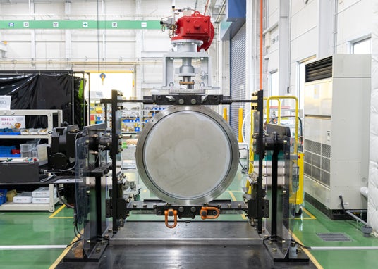 口径1m、全長2.3m、重量1.2tの大型バルブを間近でご覧いただけます。